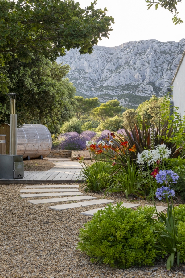 Un espace bien‑être complète l’ensemble, avec un sauna et un bain nordique orientés vers la montagne Sainte Victoire. C’est un lieu où le temps ralentit, pensé pour se ressourcer en silence, face à l’un des paysages les plus emblématiques de Provence.