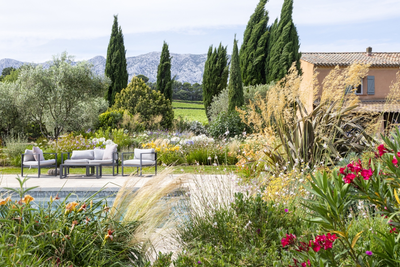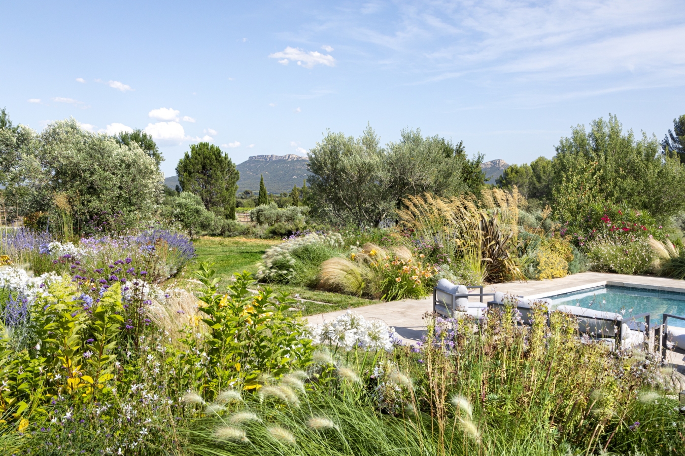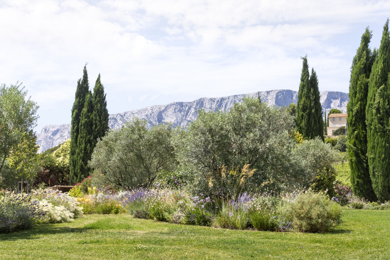 Au cœur de la Provence, non loin de la montagne Sainte-Victoire dont la silhouette majestueuse se dessine à l’horizon, Le jardin naturaliste du haras provençal de Caire s’inscrit dans un territoire agricole préservé, entre oliveraie, prairies et présence apaisante des chevaux. Ici, le jardin ne cherche pas à dominer le paysage : il dialogue avec lui, en devenant un premier plan vivant qui sublime l’arrière-plan naturel.