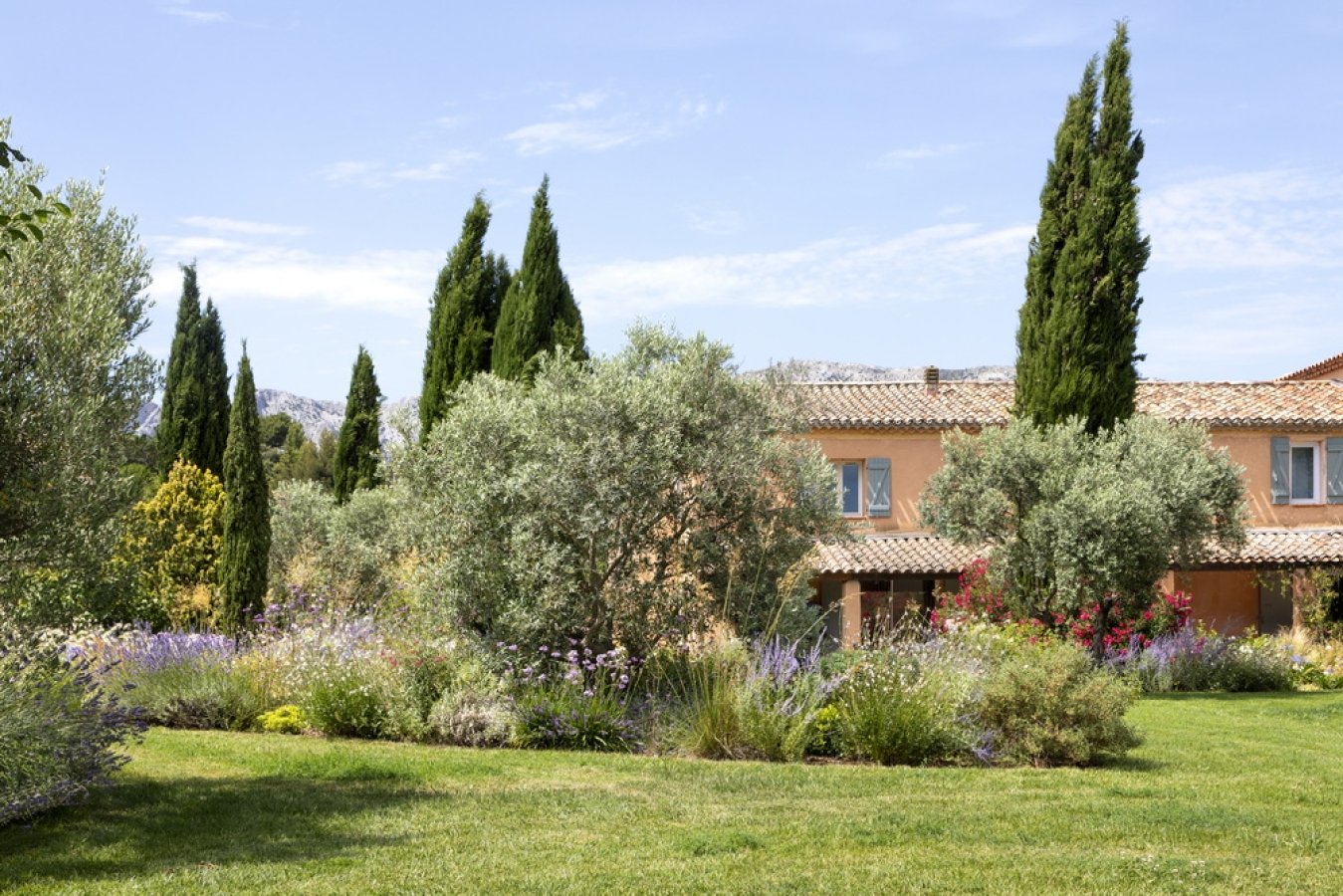 Ce jardin provençal prend place dans un haras, offrant des perspectives ouvertes et une sensation d’espace rare. À l’origine, des oliviers remarquables, vestiges d’une oliveraie et des arbres fruitiers structuraient le lieu. Le projet de paysage a consisté non pas à ajouter des arbres, mais à révéler leur potentiel existant, en composant un jardin méditerranéen naturaliste, foisonnant et profondément vivant.